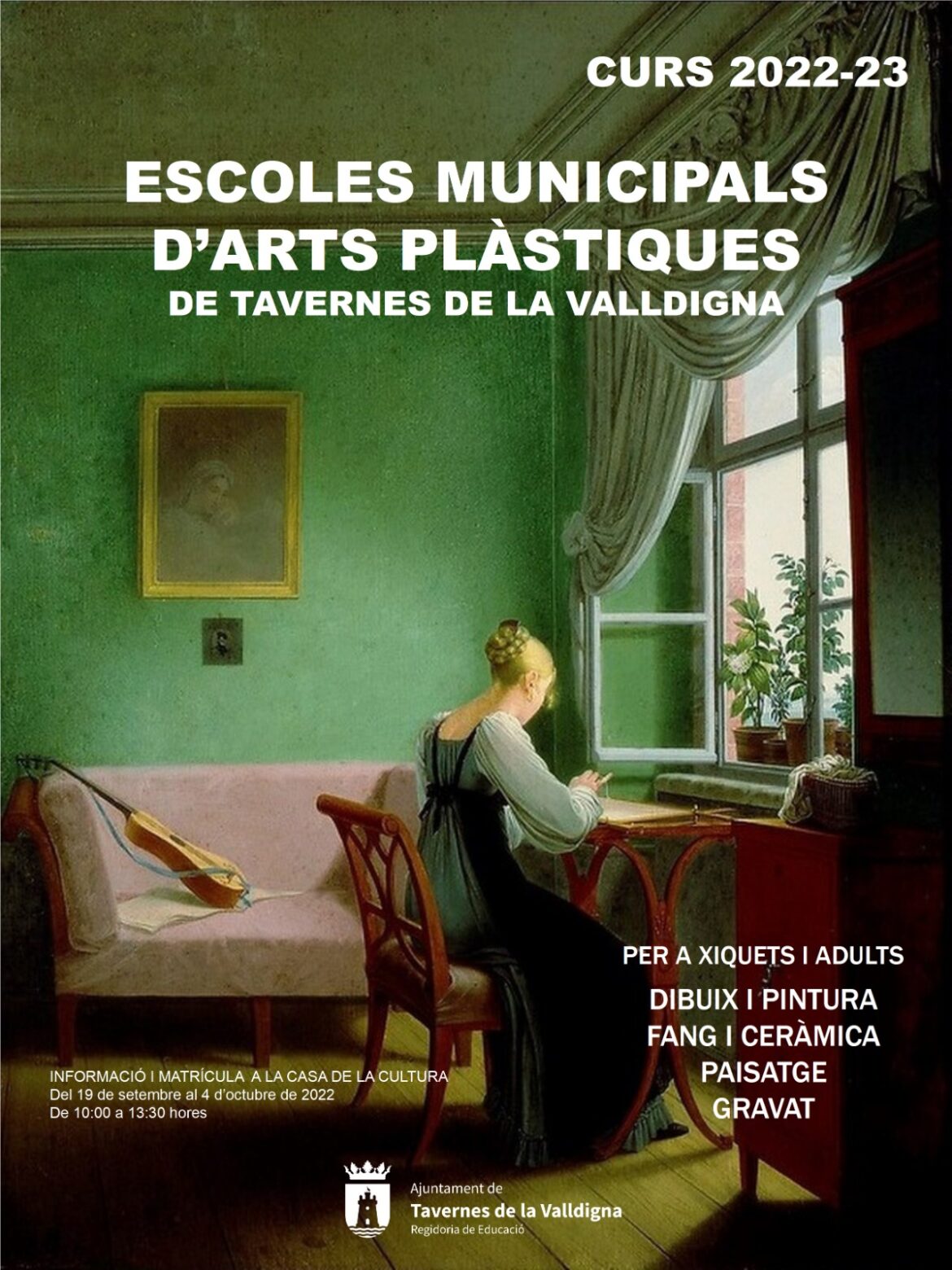 Com cada any, s’ha obert el procés de matriculació per a les Escoles Municipals d’Arts Plàstiques de Tavernes, amb les quals es pot aprendre amb els nous cursos artístics dirigits tant a adults com a xiquets i xiquetes a partir de 10 anys. L’alumnat aprendrà i coneixerà un poc més tècniques artístiques com el gravat, els dibuixos i la pintura de paisatges i també a fer escultures i figures amb materials com el fang i la ceràmica.