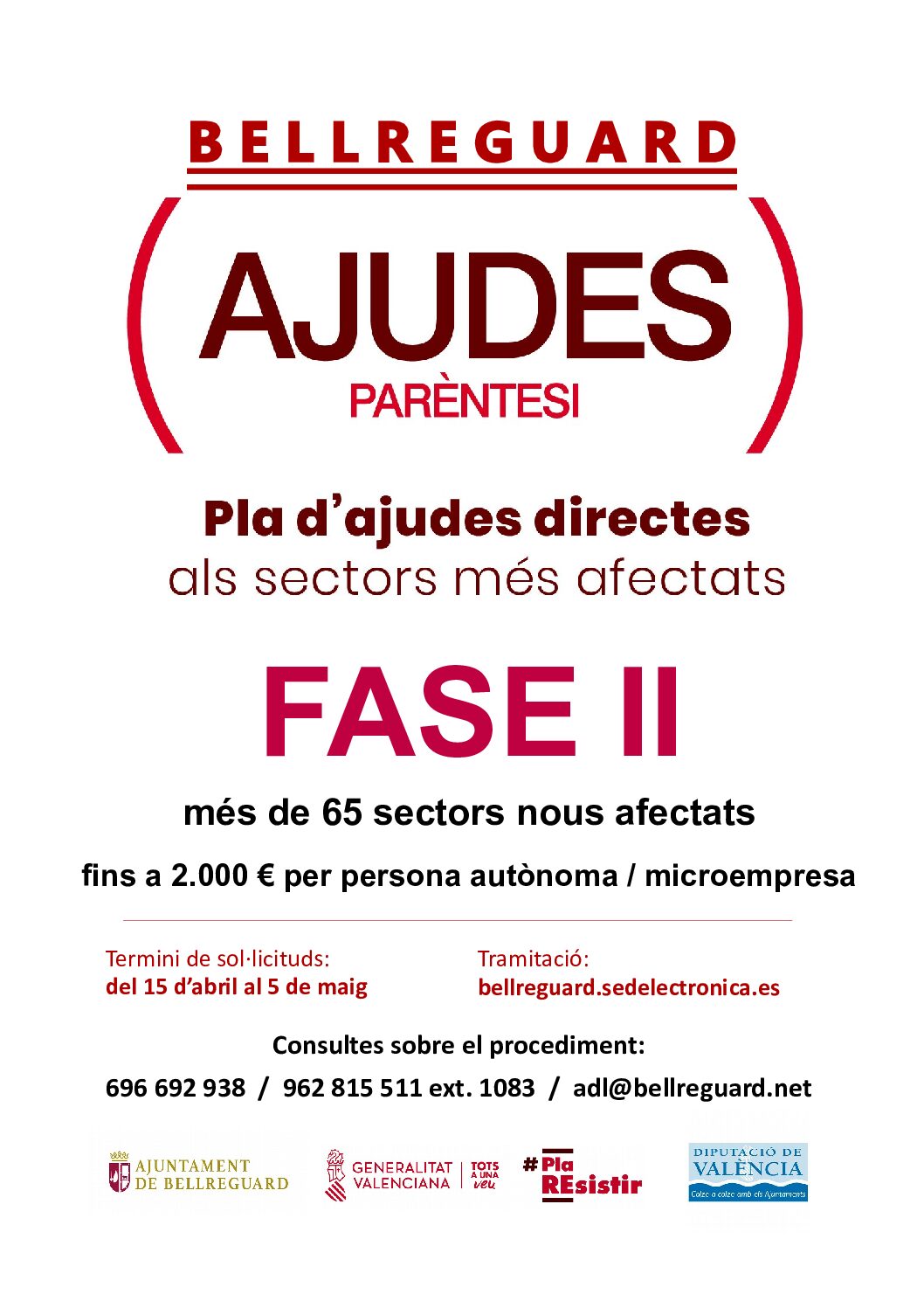 A més, tota la informació sobre el pla, els models de sol·licitud o la relació dels sectors als quals va adreçat s’hi troba penjat en la web de l’Ajuntament de Bellreguard, en el següent enllaç: https://web.bellreguard.net/plaresistir-fase2/