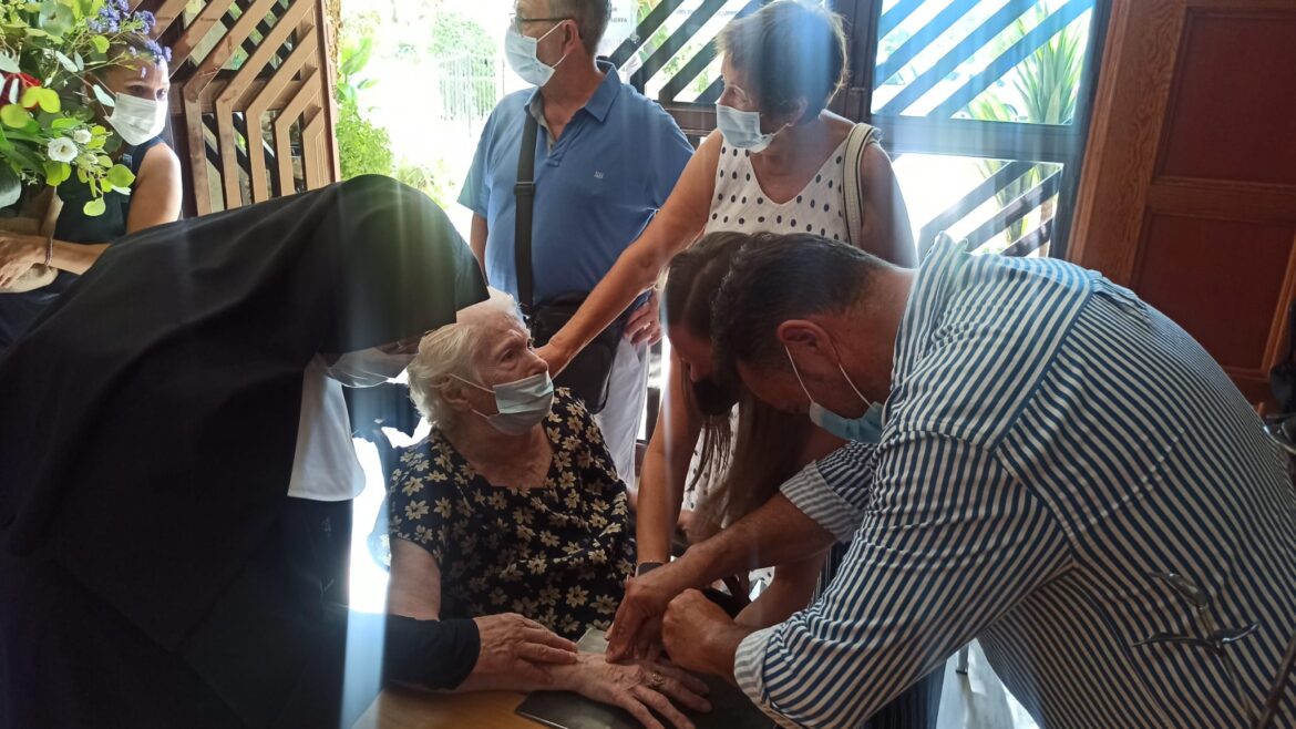 L’emotiu homenatge que familiars, treballadors i treballadores de la residència i la delegació de l’Ajuntament encapçalada per la vicealcaldessa, van fer a aquestes extraordinàries dones pel seu aniversari va servir per a que la silueta de les seves mans forme part de l’esmentada escultura que l’artista de Tavernes de la Valldigna, està fent.