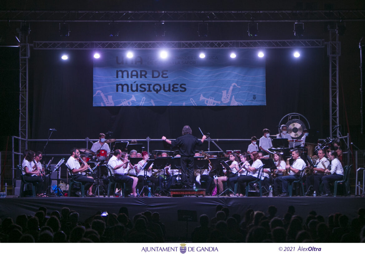 Gandia, 4 d’agost de 2021.- El Festival de bandes de música de Gandia ‘La Mar de Músiques’ continua la seua activitat al mes d’agost per a amenitzar les nits a la Platja de Gandia i per a apropar la música de les bandes de la comarca a la ciutadania gandiana i als seus visitants, ja que es tracta d’una de les senyes d’identitat més reconegudes del patrimoni cultural valencià.