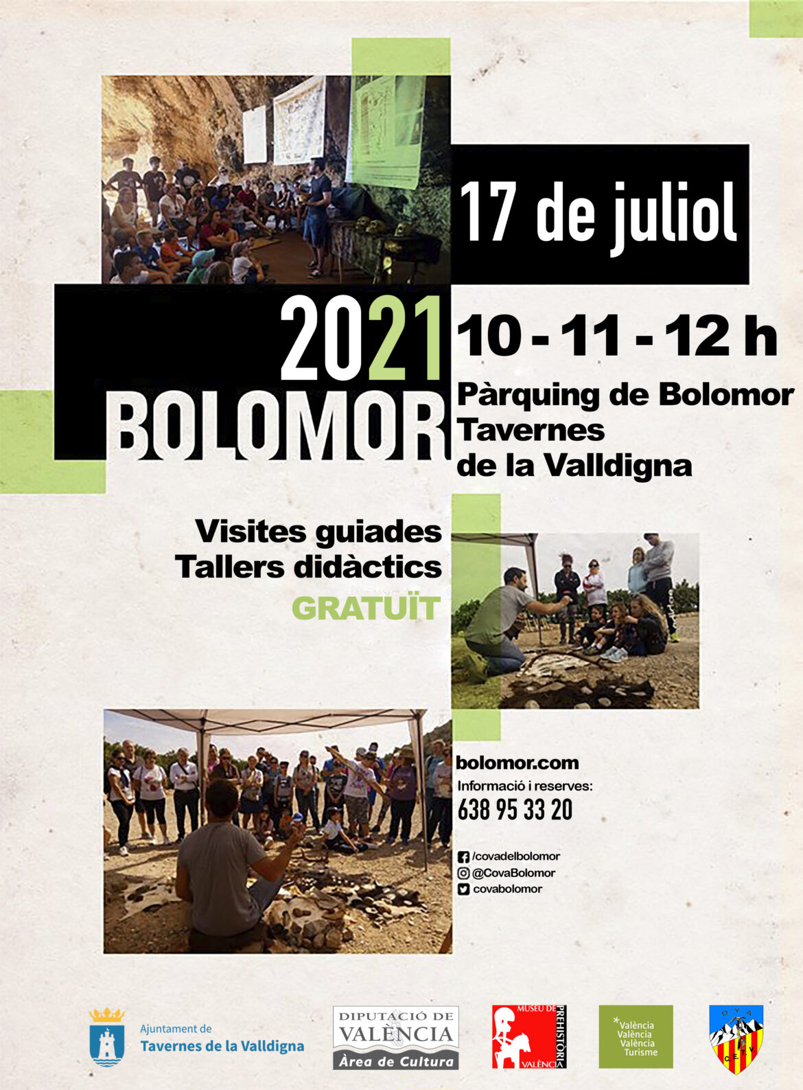 Un año más, el Ayuntamiento de Tascas, la Asociación Cultural *Bolomor, el Museo de Prehistoria de València y el área de Cultura de la Diputación de València, con la colaboración del Centro Excursionista de Tascas, ofrecen la oportunidad a la ciudadanía de conocer uno de los yacimientos arqueológicos del paleolítico más importantes que hay a Europa.