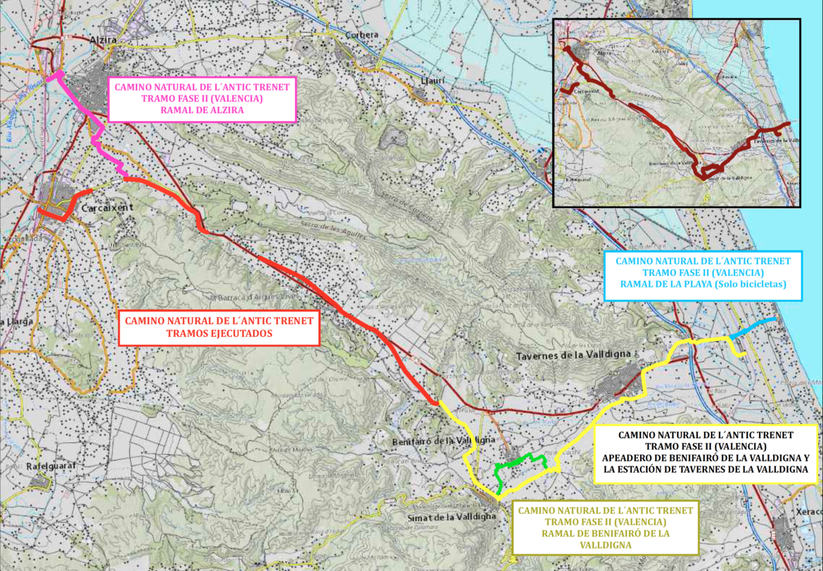 El proyecto supone la creación de una vía ciclopedestre que unirá Carcaixent y la Ribera Alta con Tascas y su playa a través de la recuperación del trazado de la antigua vía férrea del trenecito Carcaixent-Dénia, un proyecto que contribuirá al desarrollo sostenible del medio rural y a acercar el medio natural en la población.