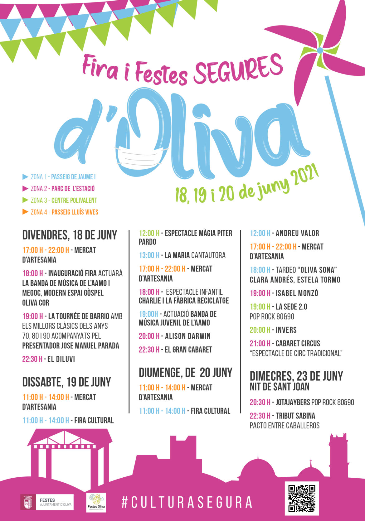 La inauguración oficial será viernes, a las 18 h, con la actuación de la Asociación Artístico-Musical de Oliva y MEGOC Moderno Espacio Gòspel Coro al parque de la Estación, que darán el pistoletazo de salida a unas fiestas seguras y responsables.
