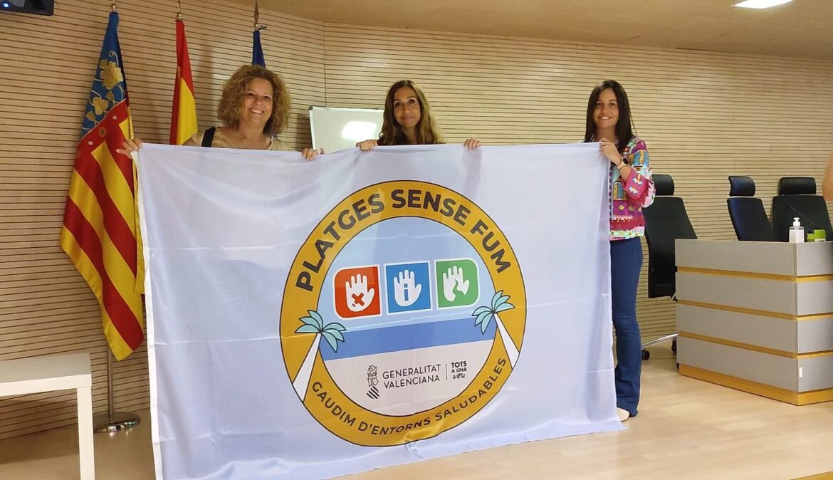 La secretària autonòmica de Salut Pública i del Sistema Sanitari Públic, Isaura Navarro, va fer entrega a Tavernes de les banderes de la Xarxa de platges sense fum.