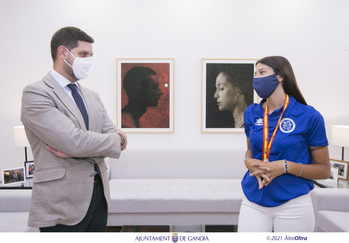 El alcalde de Gandia, José Manuel Prieto acompañado por el vicealcalde, Josep Alandete y la regidora delegada de deportes, Lydia Morant, recibieron ayer en el despacho de alcaldía a Martina Olivares, jugadora del Club Voleibol Gandia y que también ha estado capitana e integrando del equipo infantil femenino de la Comunidad Valenciana que se ha proclamado campeón de España en los Campeonatos de España de Selecciones Autonómicas (CESA) que tuvo lugar en Valladolid el pasado mas de julio.